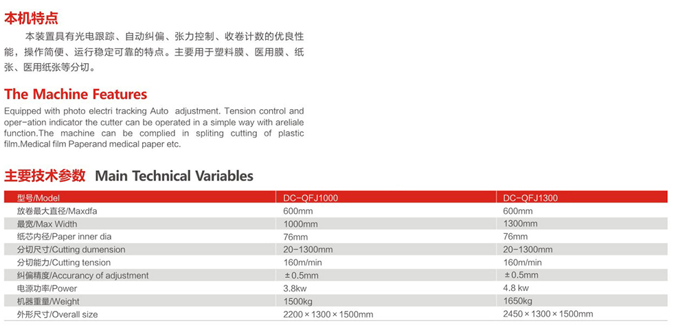 DC-QFJ1000-1300 microcomputer controlled automatic slitting machine